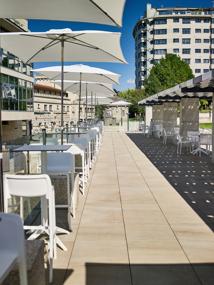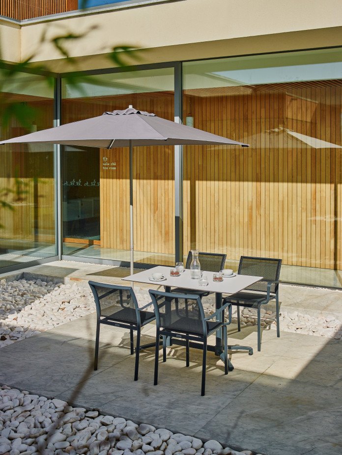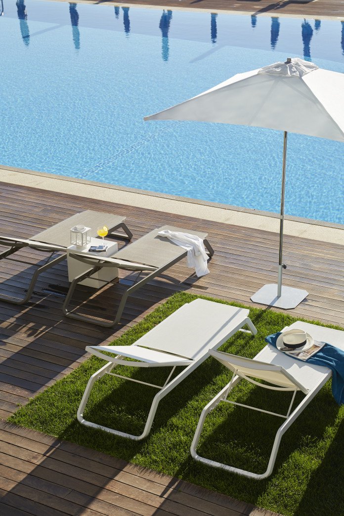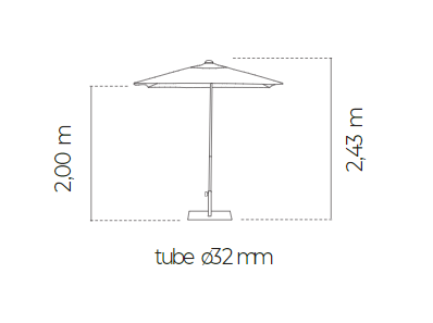 Inox suncobran. 4 rebra od fiberglasa (12,5 mm). Push-up sustav otvaranja. Tkanina je izrađena od polipropilenske tkanine koja je masovno obojena tijekom početnog procesa. To osigurava visoku otpornost na sunčevu svjetlost jer se boja u niti tkanine postavlja intenzivnije od ostalih postupaka. UV standard 801 ocjena UPF 80, koji jamči zaštitu kože od negativnih učinaka UV zraka na kožu. Vodootporna, otporna na mrlje i 100 % tkanina koja se može reciklirati. tkanina je težine 190 gr. Baza nije uključena u cijenu. Vrlo lako se čisti i dezinficira. Koristiti na stabilnim i ravnim površinama. Proizvod za javnu i domaću uporabu.