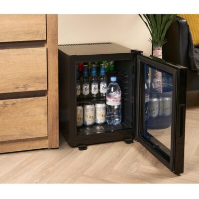 S kapacitetom od 40 litara, idealan je za pohranu širokog izbora osvježavajućih pića i grickalica. Ovaj stilski, tih i praktičan minibar značajno unapređuje iskustvo boravka vaših gostiju.