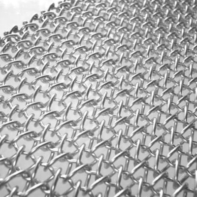 - Arhitektonska metalna tkanina s malim otvorima, tkana na valovite igle, zavarene na rubovima.