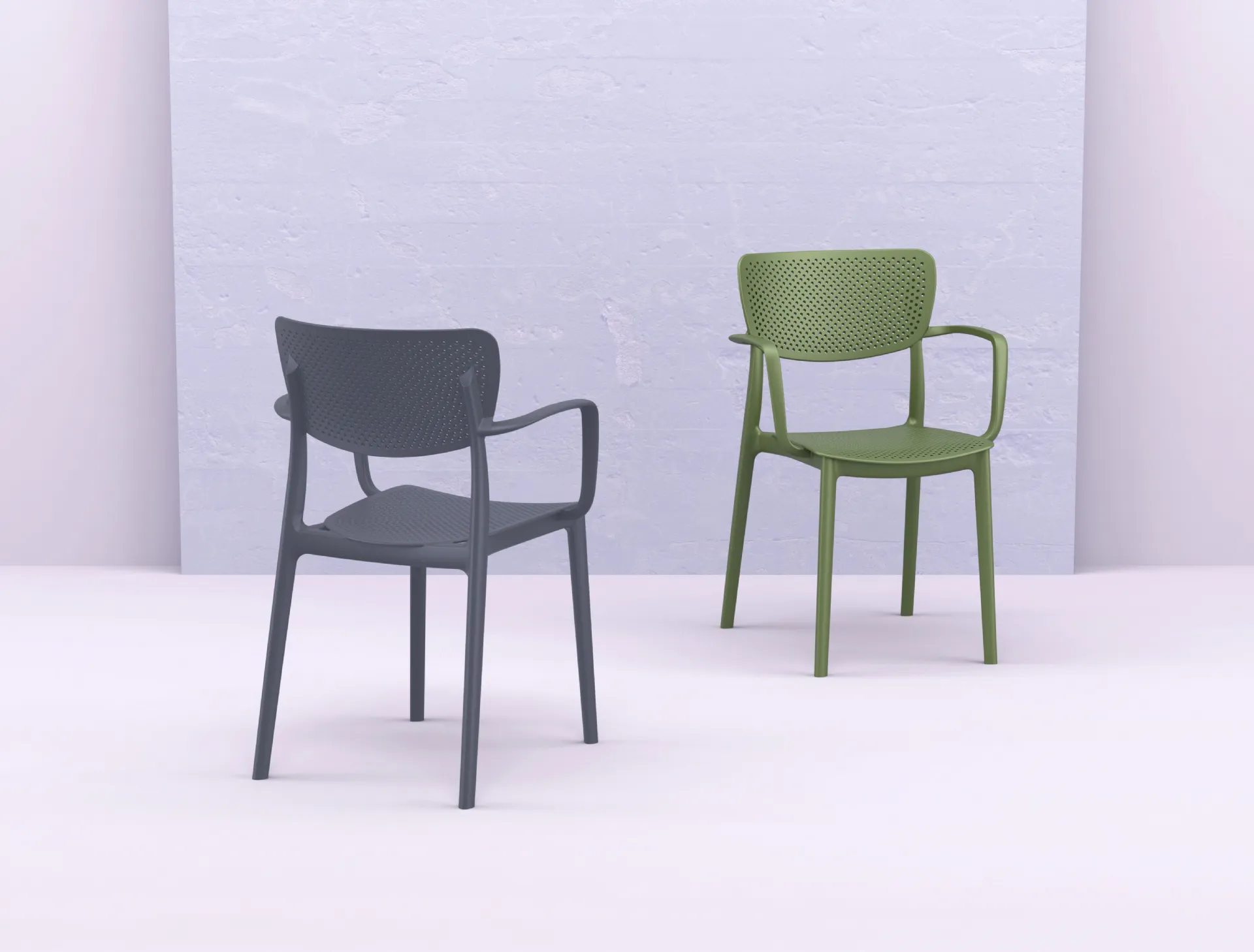 Blagovaonska fotelja proizvedena zračnim brizganjem polipropilena, obojena masa i ojačana staklenim vlaknima.