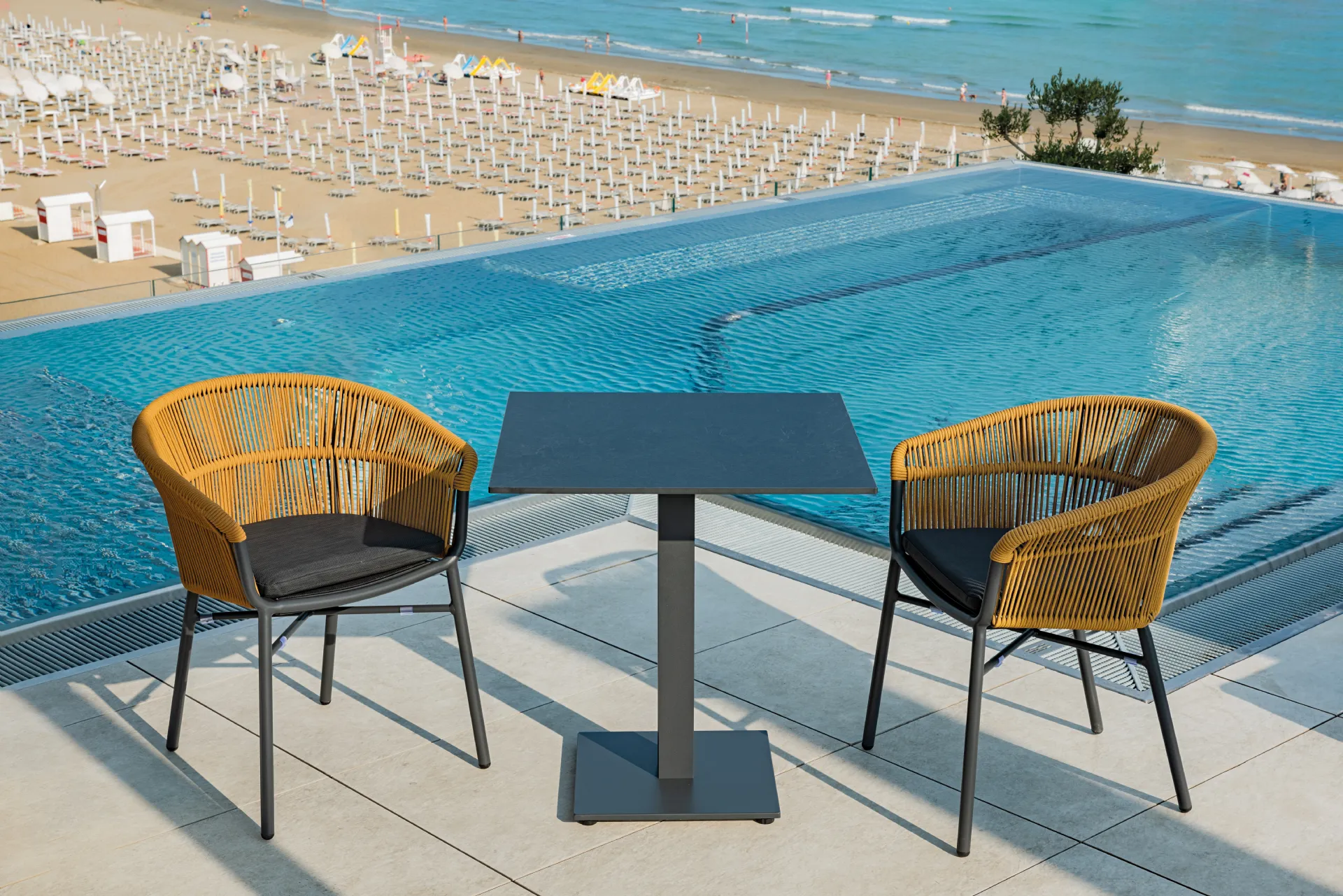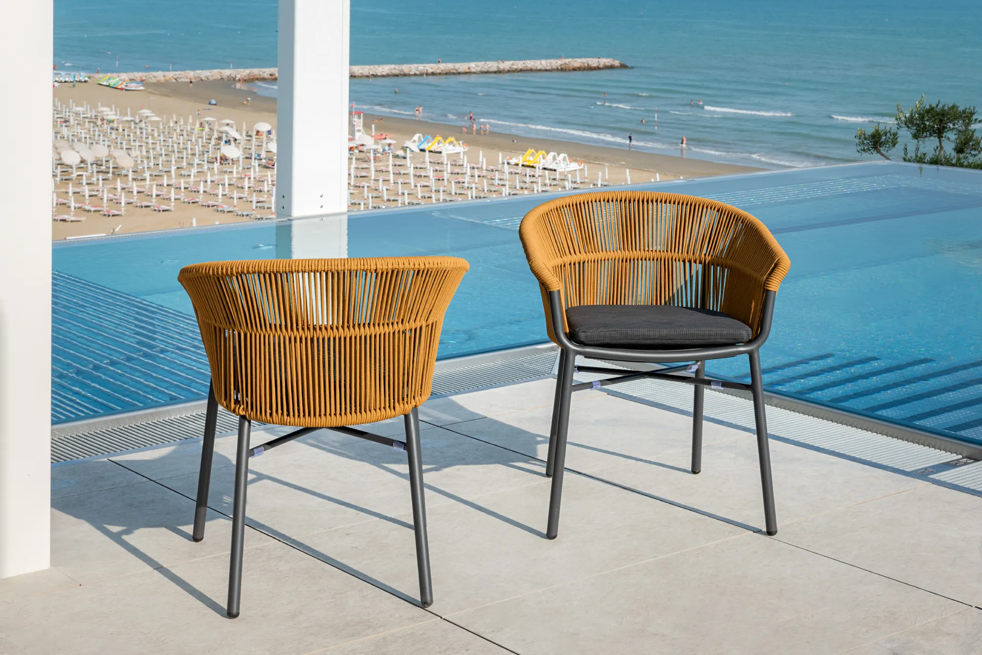 ručno tkanim sintetičkim konopom. Jastuk ima uklonjivu PVC tkaninu i podstavu koja se brzo suši.