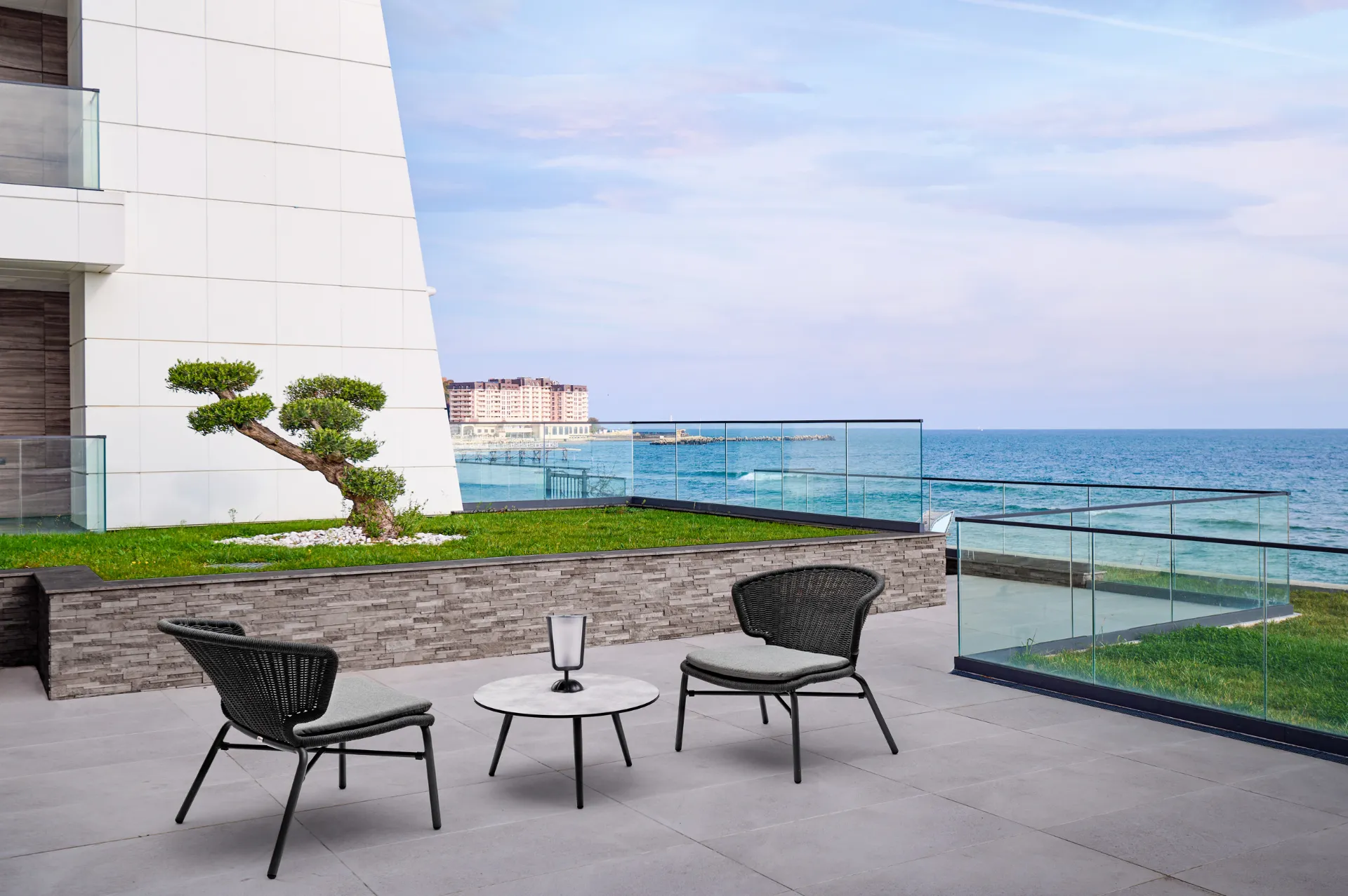 sjedište i naslon presvučeni su ručno tkanim sintetičkim užetom.