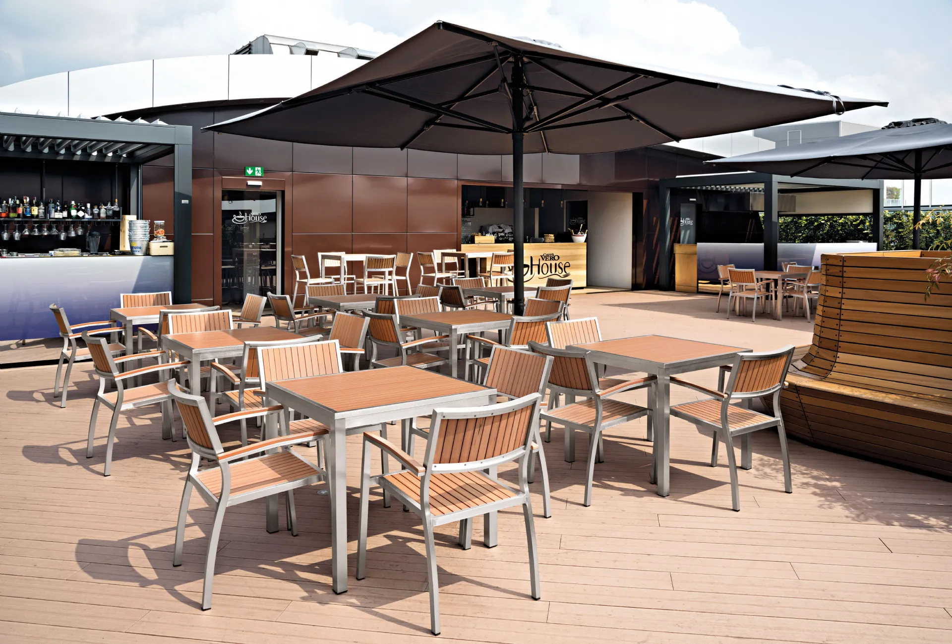 Sjedala i nasloni izrađeni su od Tech no wood, inovativnog plastičnog materijala.
